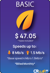 Service we provideWe provide you with a single network cable to connect to a computer, router, or switch. From there you will provide the means of distribution in your home or business. That can be done with the use of a hub, switch, router, wireless router, or access point to allow the use of multiple wireless devices. Or, you can just connect a single computer if you wish. CRWIFI does not sell wireless routers. We can setup a wireless router for you while on site if you have it available. (We are not responsible for your local network, any devices on the network, or the configuration of your computers. All distribution devices have to remain in bridge mode and wireless transmitters (AP's) must use encryption)